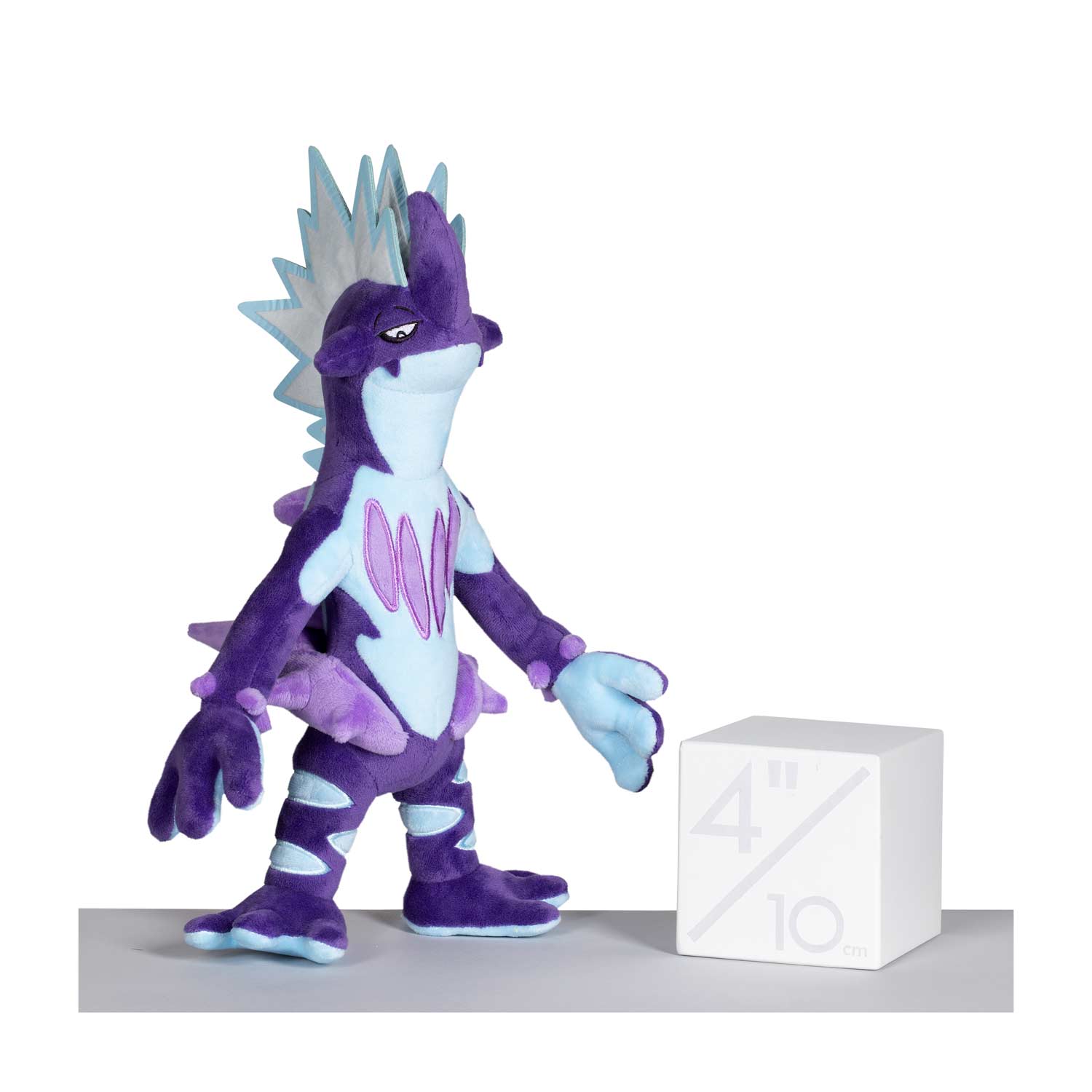 Zudem prägt es ein großes Horn in der Mitte des Kopfes aus und blaue Blitze zucken auf seinem Kopf. All diese Details gibt Riffex als Plüschfigur hier bestens wieder.