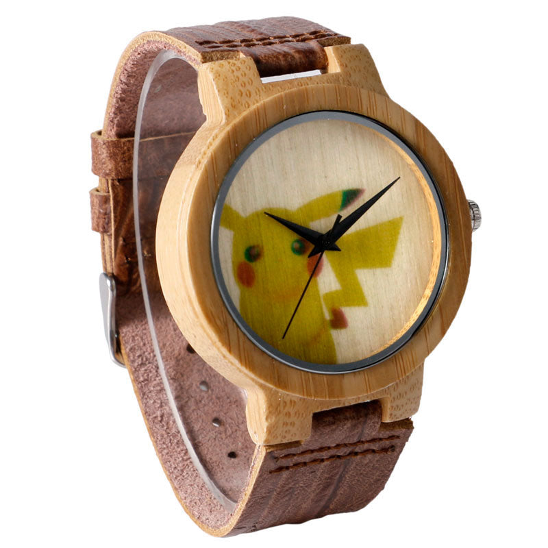 Pikachu Pokemon Bambus Holz Armbanduhr